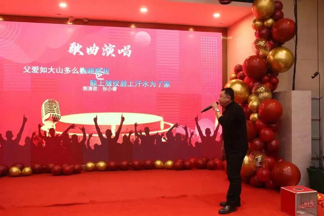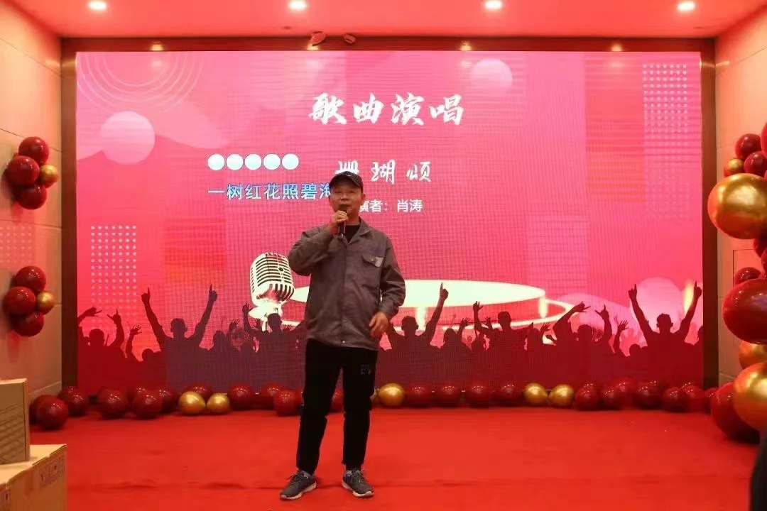 年会上,我们欢聚一堂,引吭高歌,热闹非凡。