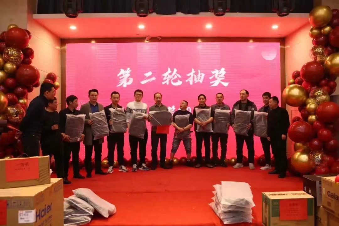 年会上,公司给大家抽取了许多的礼品以及现金大奖(10000元)。我们拥有整齐划一的步伐,我们拥有心有灵犀的默契,我们“工作相同、思想互通、感情互通、企业共赢”。