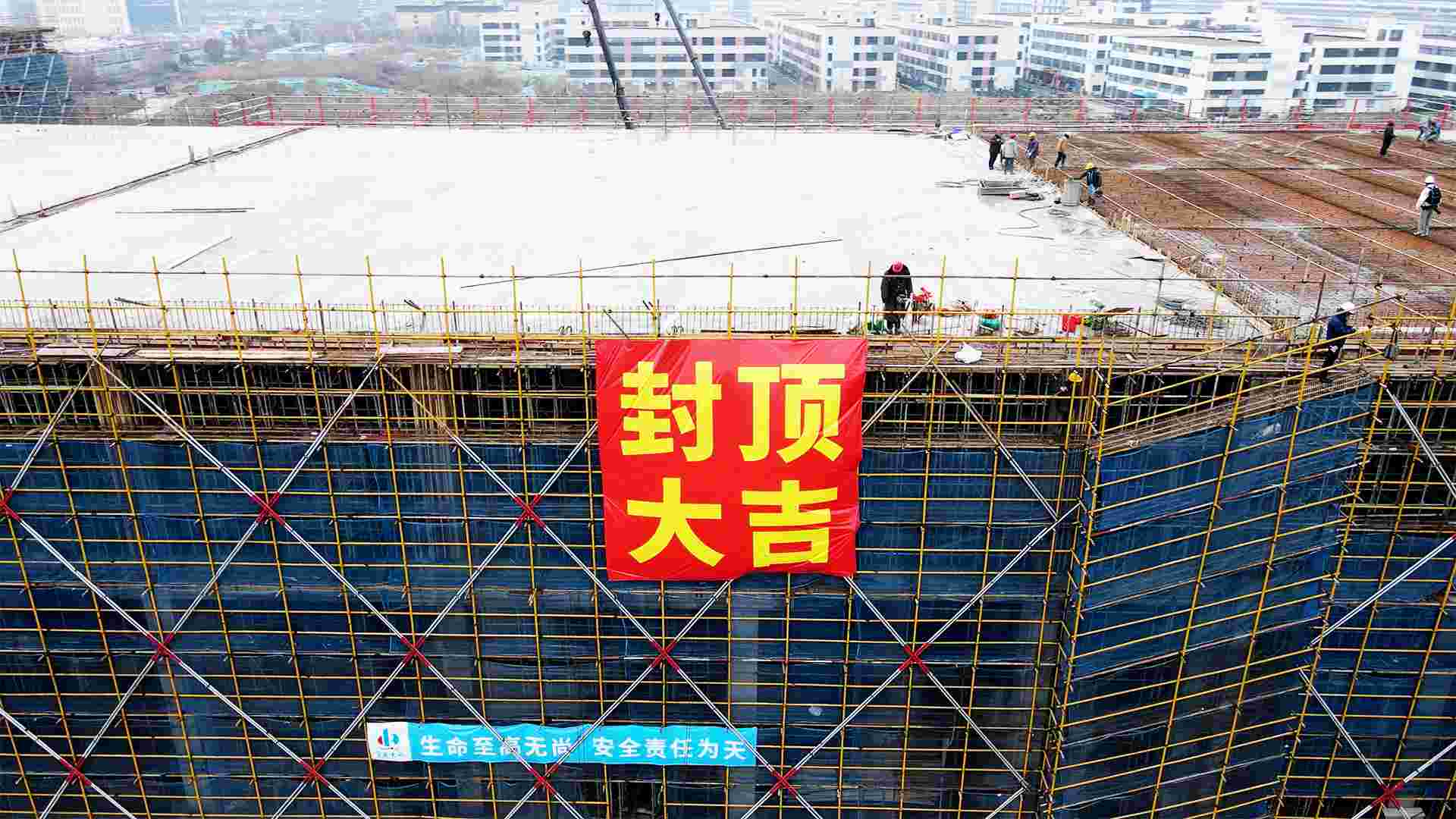 标志着本次封顶仪式圆满礼成